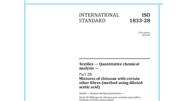 由中國通用技術(shù)集團中紡院中紡標檢驗認證股份有限公司(簡稱:中紡標)牽頭制定的國際標準ISO1833-28:2019《紡織品定量化學分析第28部分:殼聚糖纖維與某些其他纖維混合物(稀乙酸法)》正式發(fā)布